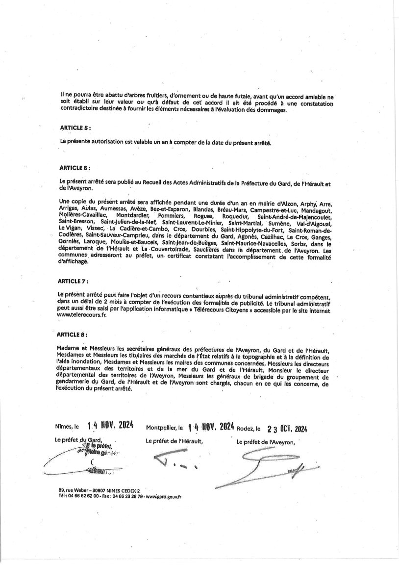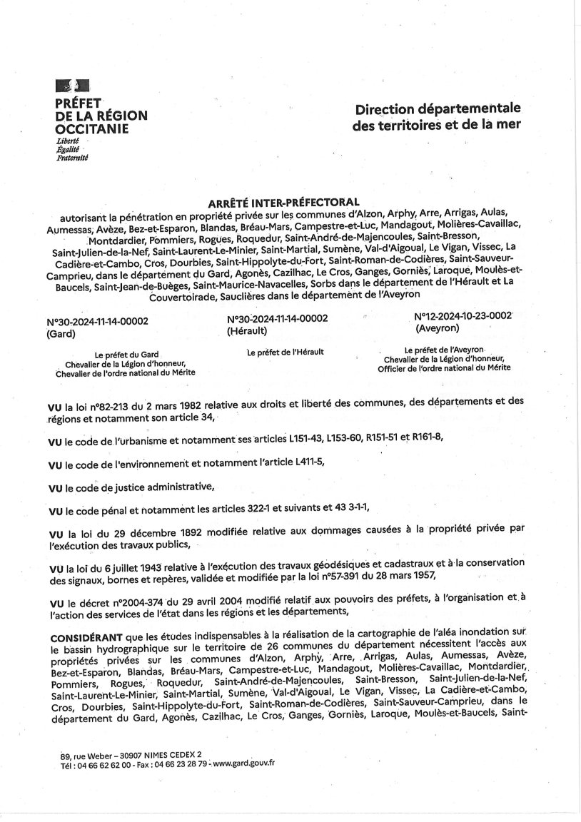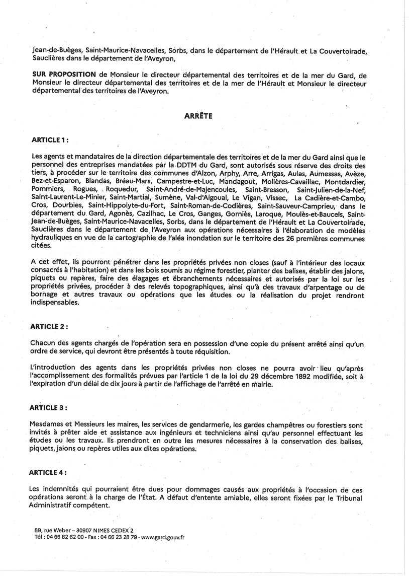 Vous trouverez ci-dessous l’arrêté inter-préfectoral autorisant la pénétration du personnel des entreprises mandatées sur les propriétés privées non closes de la commune.
