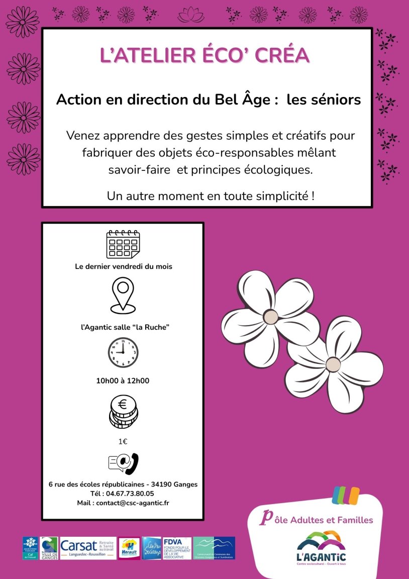 Le centre socioculturel de l’Agantic propose une nouvelle animation en direction du Bel âge qui débute le vendredi 27/02 : l’atelier Eco’ Créa