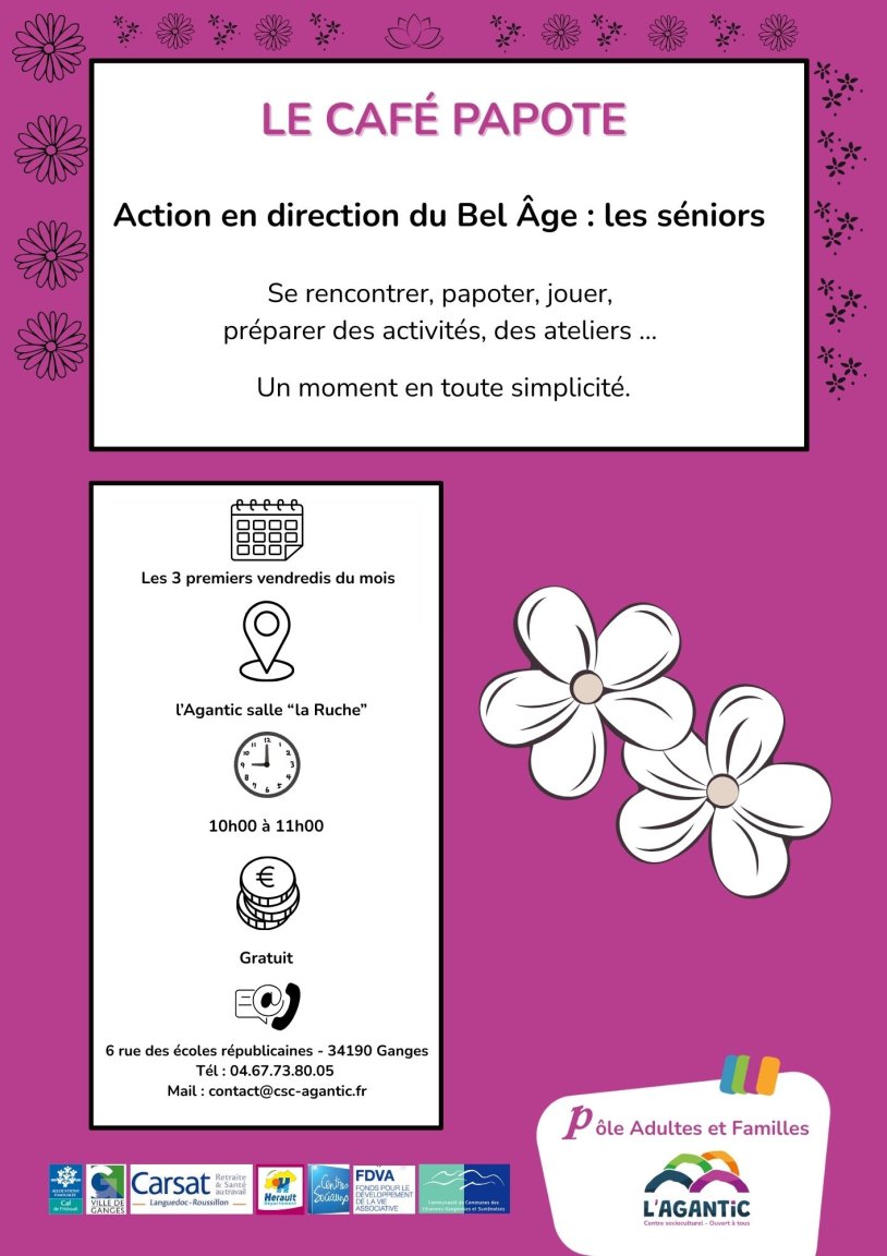 et toujours Le Café Papote qui a lieu les 3 premiers du vendredis du mois au sein du centre socioculturel l’Agantic.