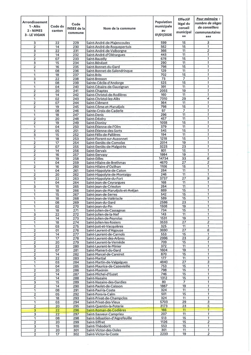 Site officiel de Saint-Roman-de-CodièresCliquez pour consulter ->Résultat élections municipales du 15 mars 2026