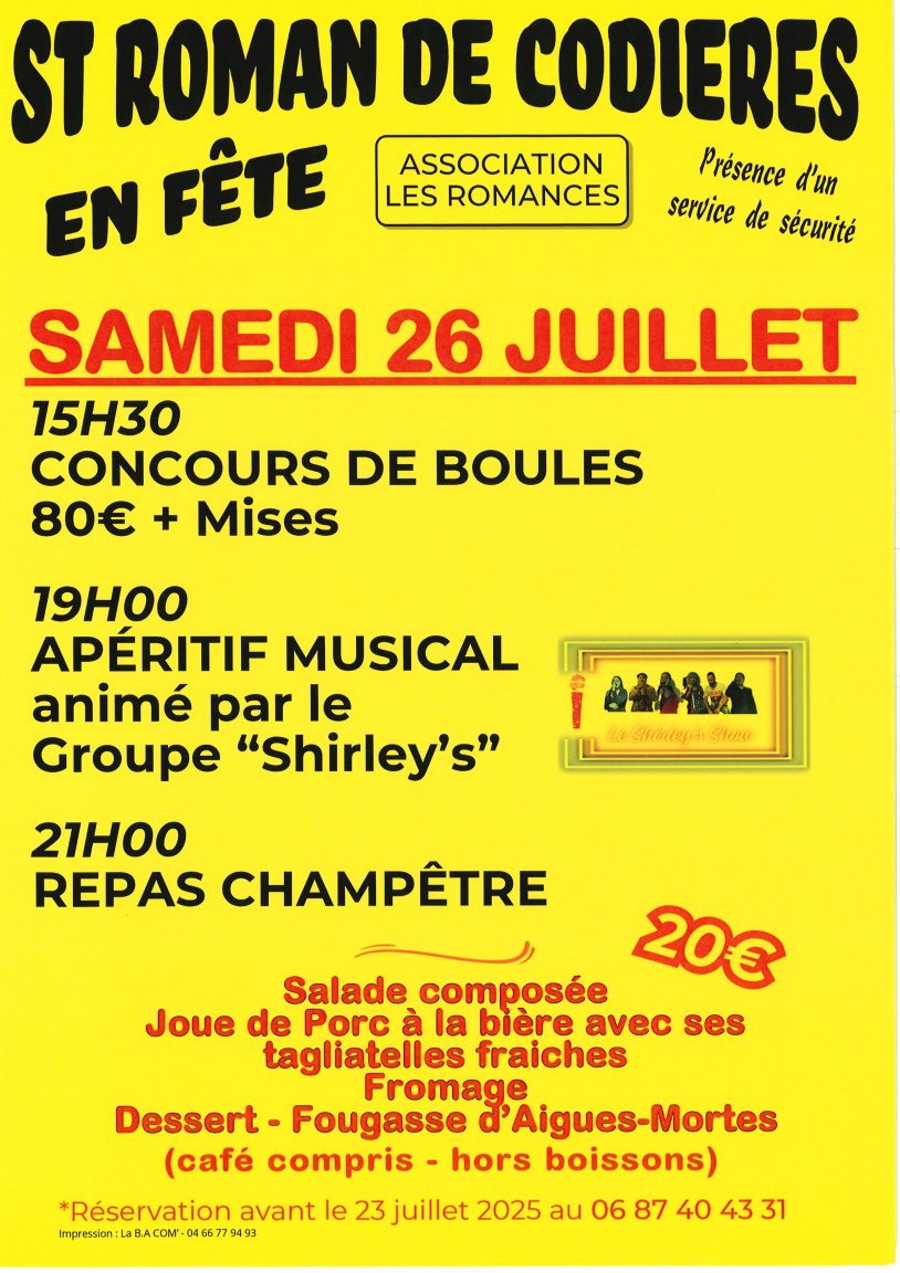 Fête votive - « Les Romances » Le 26 Juillet à l’espace « Gérard Etancelin » de la Bergerie du Trescol