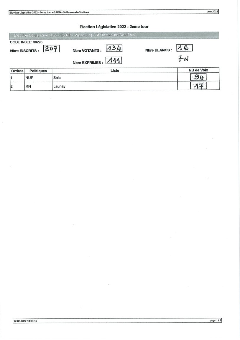 Résultats des deux tours des élections legislatives 2022