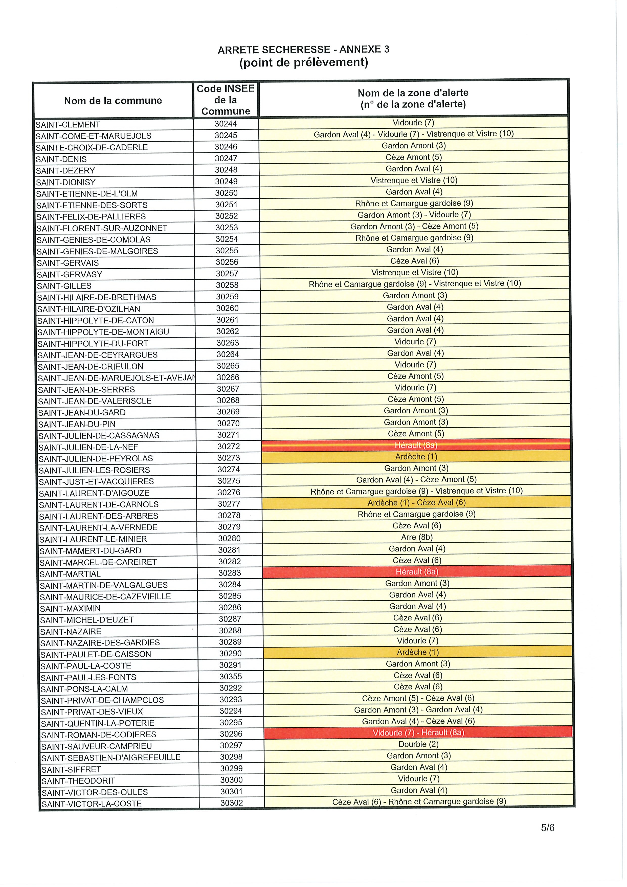 suite à la consultation le 13 août du Comité de la ressource en eau du Gard