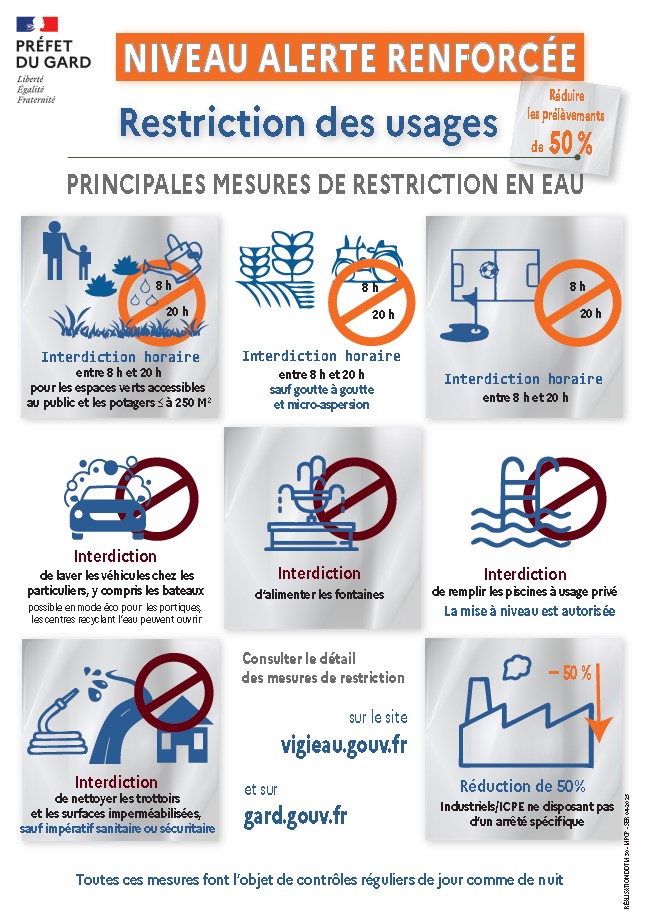 Il est aussi rappelé que les usagers, particuliers ou professionnels, doivent se conformer strictement aux interdictions et restrictions générées par le présent arrêté.