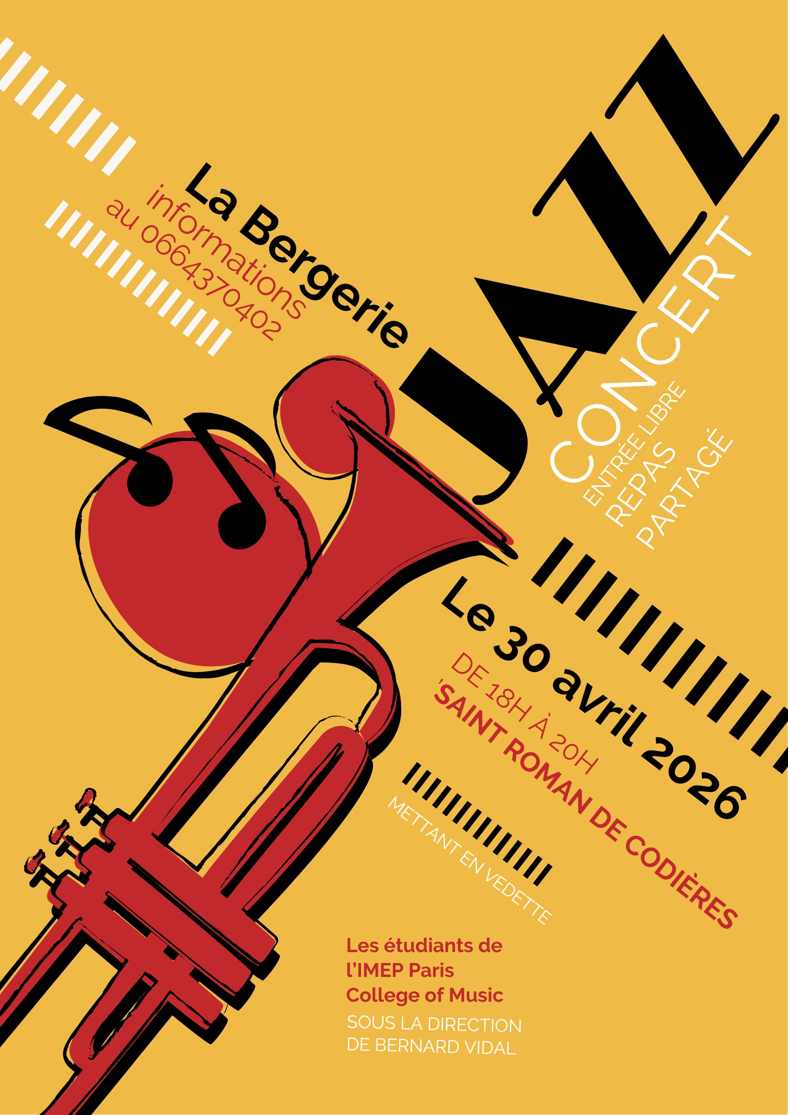 Soirée concert Jazz de 18h à 20h à la Bergerie Moment musical et convivial avec les élèves de l’IMEP en sortie de résidence Repas partagé après le concert